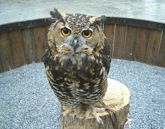 ふくろうショーも横目でチラリ、音も立てずに“スーー”っと飛ぶんですね〜。