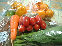 で、宝助達にと小松菜、黄ピーマン、トマト、にんじん、みかんを買ったんよ〜。