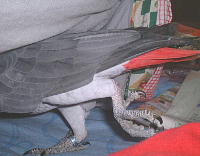 おぉ〜〜!目の前に仰向けヨウムが〜〜。