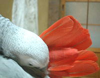 ケージの上に乗ると必ず羽根をだらんと下げて
