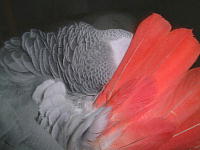 玄関の隣の部屋にいる宝助はと言うと、お腹の羽根を