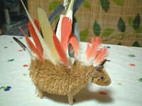 みんなの抜けた羽根がもったいないので差してます。