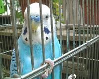 ケージの中でくつろいでいる宝助を撮ろうとすると