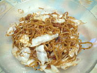 (この肉かすは「焼きそばの友」と書かれている袋に