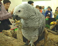 このヨウムちゃん、たくさんの人が近くにいるのに