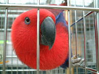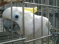 ひなたぼっこ中、ケージに嘴を当ててこの後ケージの天井をがっしがっしと歩いたんよ。