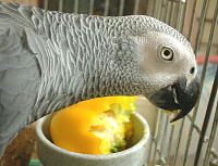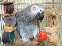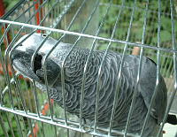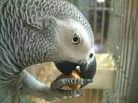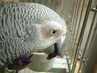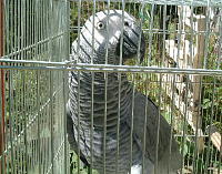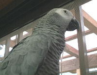 (画像にマウスを重ねたらヨウムちゃんが見られます。この子は手に乗ってくれたんよ)