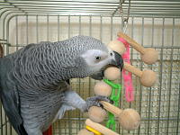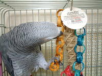 昨日、新しいおもちゃを宝助のケージに付けてみた。