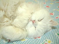 暖かくなってくるとふくちゃんは昼間私のベッドの上で寝るんよ。