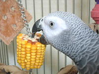 乾燥したとうもろこしをチェーンに通して宝助にあげた。