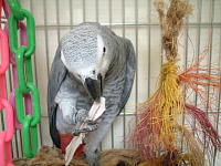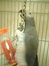 先日買った新しいおもちゃをケージに付けてみた。(6月24日の日記の画像、下段左)