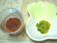 宝助の本日のお野菜は小松菜入りかぼちゃだんごと小松菜入りトマトジュース・・・う〜む、私だったら食べたくないなぁ(笑)