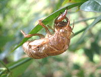 裏の沈丁花の木にセミの抜け殻があった。
