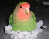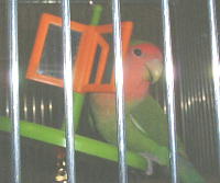 口にくわえては上の止まり木に運んで、遊んでいるうちに