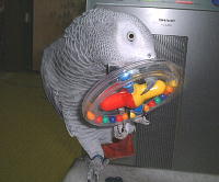 げっ!羽根の中にまで浸透してるんか、ヨウム粉って・・・