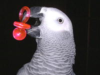 鳥用のおしゃぶり型おもちゃで